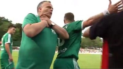 Trenér týmu Viktoria Kahl, Muhamedem Preljevic, v okamžicích bezkonkurenční herectví během zápasu proti Alemanie Haibach (5. kategorie Německo).