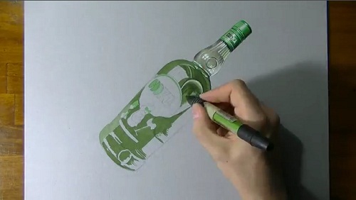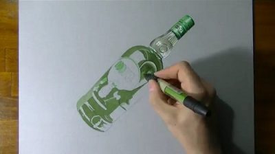 Realistický obraz láhev vodky, Italské zpěvačky Marcello Barenghi.