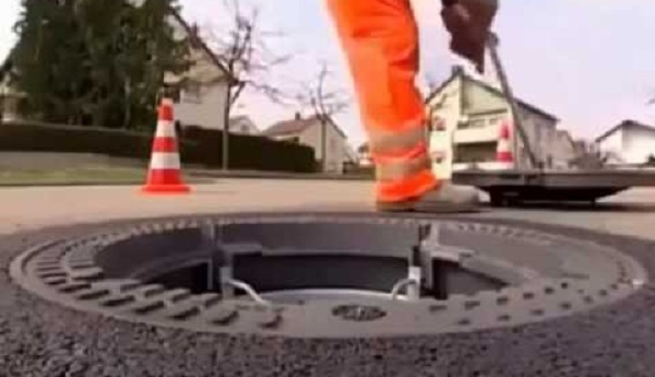 Silniční stavební dělníci v Německu, Opravte pátrání, která se potopila pár centimetrů na asfaltu. Mnoho studní v našich vlastních ulicích se stali nebezpečné výmoly.