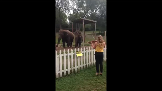 Před její koncert, houslista komorního orchestru Bartsch Eleanor orchestr Wisconsin, zopakoval „Koncert pro 2 housle d moll“ Johanna Sebastiana Bacha před dvěma slony. Kelly 44 a Viola 45 let, kteří spolu strávili většinu svého života, Zdá se, že k poslechu hudby a přitom taneční kreace.
