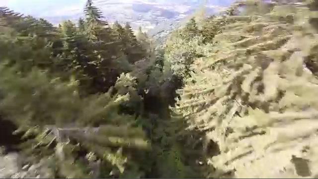Scotty Bob atlet, vytvořit působivou kombinéze letu mezi stromy v švýcarských Alpách.