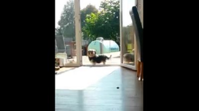 Malý pes sedí venku na verandě, myslí, že je zavřené dveře na balkón. Majitel se bude snažit nalákat ho s jídlem, ale myslí si, že nemůže dostat do domu. Nakonec někdo bude dělat ho do předstírat, že se otevírá fantastický.