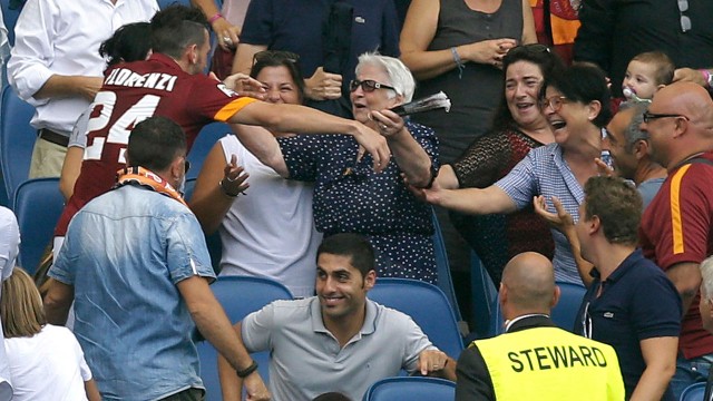 Romové útočník Alessandro Florenzi běží v porostech věnovat cíl, který právě vstřelil na 82chroni babička, Přišel jsem si pro první čas, aby ho na hřišti. Florenzi obdržel žlutou kartu po této akce, ale jako trenér: 'To nevadí, Stálo to za to'.