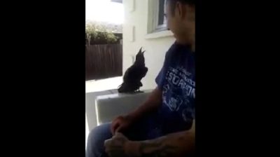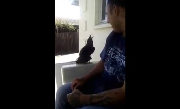 Vrána se přiblíží člověka, aby mu říct dvě slova. Jaká Hrubost!