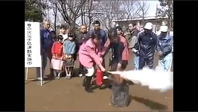 Novinářem v Japonsku ekapideyetai uhasit oheň hasicí přístroj. Moc mu to nejde...