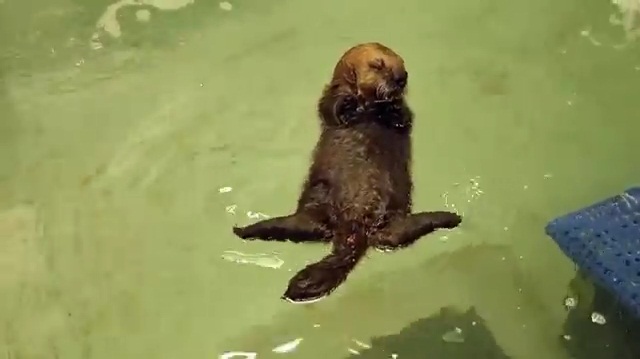 Malý sirotek vydra jménem „Pup 681“, před několika týdny na pláži v Kalifornii a přesunutý na adrese Shedd Aquarium v Chicagu. Novorozence osamocené vydry mají malou šanci na přežití. Akvárium úředníci zavede nejprve do vody, Objevte přírodní prostředí a učit se plavat.