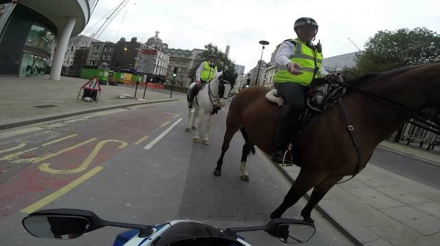 Motocyklista na Suzuki GSXR, stěhování s velkou rychlostí a dělat wheelies v centru Londýna. Bohužel pro tento ‘, před vás bude jízda na POLICAJTA, který by udělal důtku, a pohled na kameru mu radí, aby nahrál scénu, aby ukázal „lekci jízdního policisty“ i svým přátelům.