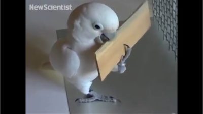 Myšlenka, že většina lidí dokáže tak docela snadno, ale většina by ani. Ale papoušek Goffin, dokazuje, že je neuvěřitelně chytrý. Našel způsob, jak udělat malý nástroj ze dřeva a použít ji k zachycení potravin. Ostatní papoušci dále se stejný trik po absolvování.