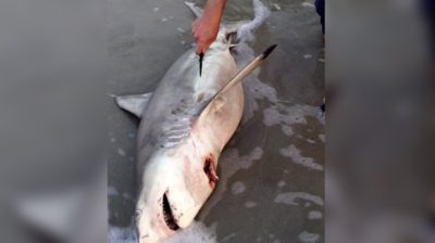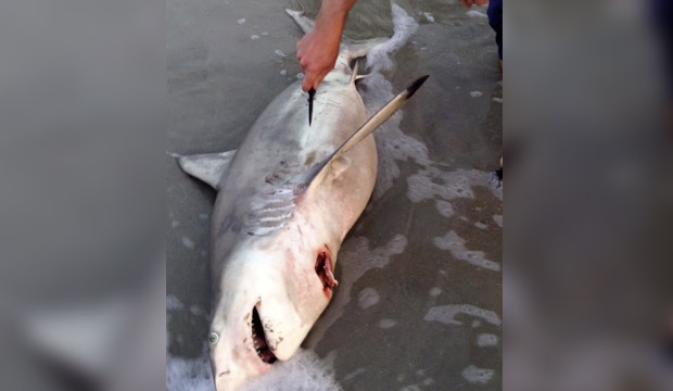 Na pláž z Kapské město v Jižní Africe, muž zachrání tři žraloci děti z břicha své matky, císařským řezem s nožem. Žena, která vytáhl video viděl mrtvý žralok do xebrazetai na pláži, a všiml si, že něco hýbalo uvnitř. Uvědomil si, že žralok je těhotná, muž otevřel jeho břicho, aby malý odstranit a pak propuštěn do moře. Nově vylíhnutých žraloci jsou zcela nezávislé, a od chvíle, kdy se narodí je schopen plavat.