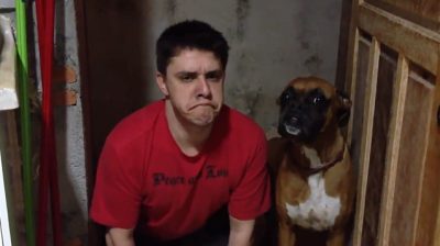 Majitel se snaží napodobit jeho pes. Rozhodně dosahuje pohyby těla a výrazem obličeje, ale to jsou dost získat soubor cookie;