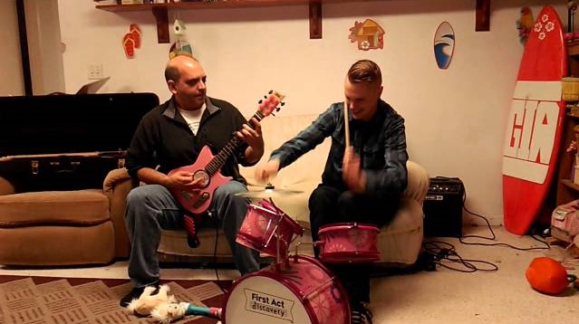 Frank Pasquale a Drew Creal hrají mísí thrash metalové skupiny Slayer, pomocí dětské hudební nástroje.