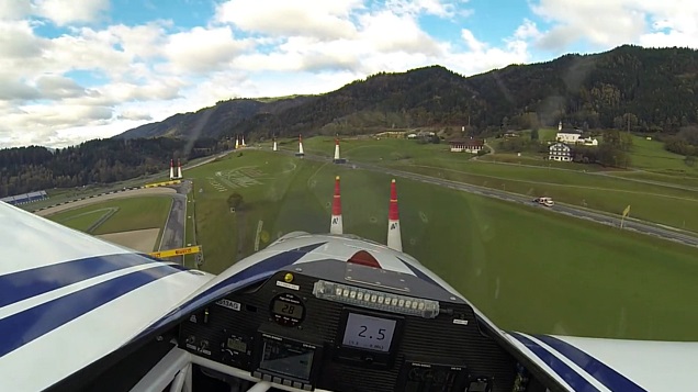 S kamerou namontován na helmu český pilot Martin Sonka, vidět nádherné záběry z kokpitu do konce závodu Red Bull Air Race 2014, Spielberg, Rakousko. Vzhledem k tomu, že jde o akrobatických letadel, pilot musí dokončit konkrétní kurz mezi překážky co nejrychleji. Překážky jsou tvořeny, dva nebo čtyři nafukovací kužely 25 metrů, a jen 10 až 15 metry od sebe. Pokud kužel dotkne roviny, je navržen tak, aby sbalit, aby nedošlo k způsobit nehodu.