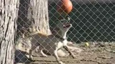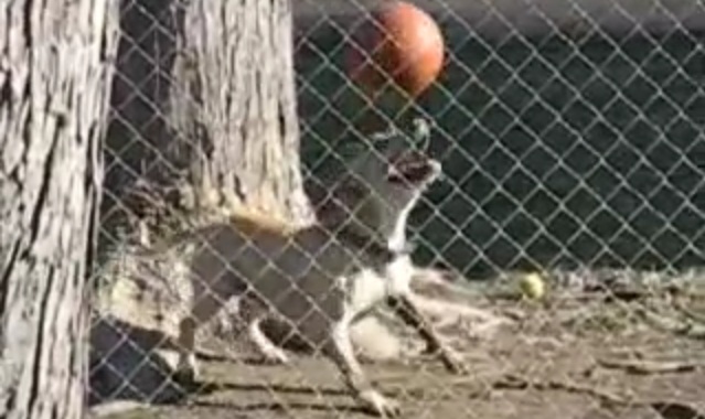 Hrozný pes, který může vyvážit míč na jeho nose a gkelarei nahoru a dolů. Pes se nikdy nenaučili něco, Podle vlastníka. Jen milující hru s míčem, a to denně.