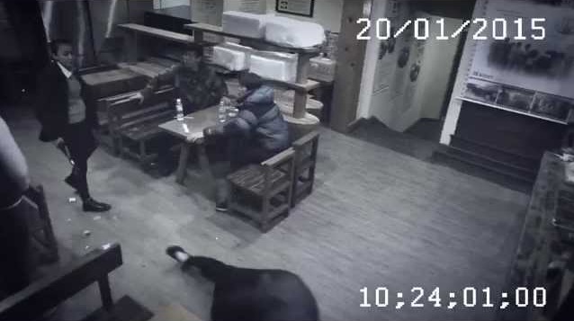 V restauraci v Jižní Koreji, tři nespokojenými zákazníky budou logomachisoyn a pak zaútočit číšníci. Mladá žena chytil se ve scéně, rychlých pohybů bít s deštník a kung-fu hrubý mladá.