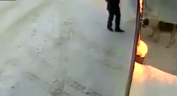 Jak chodí na zasněžené silnici, člověk slyší, štěkot psa, který se nachází za branou. Rozhodne se ublížit zvířeti nohou, ale pes kouše hrot své boty.