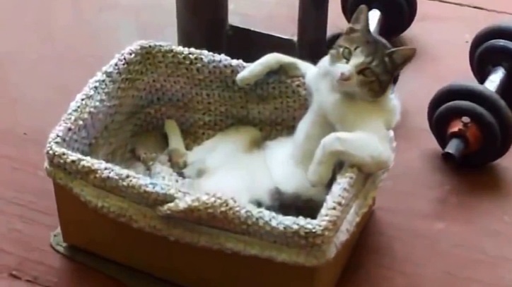 Kočka se našla příležitost k relaxaci po náročném týdnu v košíku.