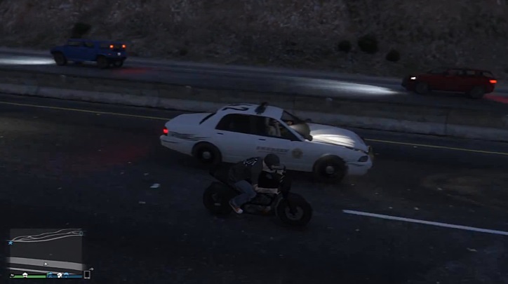 V videohře GTA V, policejní auto s nefunkční světla po konfliktu se přesune na dálnici. Policisté však nalézt řešení, Po použití jejich objektivy přes auto!