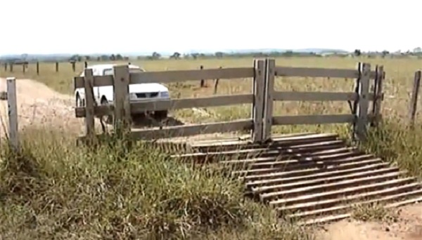 Provizorní dřevěná brána, která otevírá s hmotností auta, a automaticky zavře zabránit přístupu ke zvířatům.