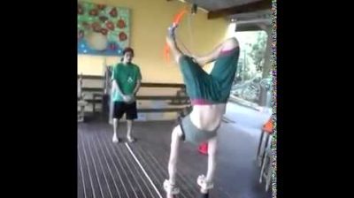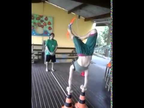 Žena, Střelba lukem s nohama při vyvažování na dopravní kužely