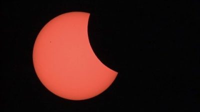Přehrajte si zatmění Slunce, které bylo vidět po celé Británii 20. března, 2015. To byl pohled z Newquay, Cornwall.