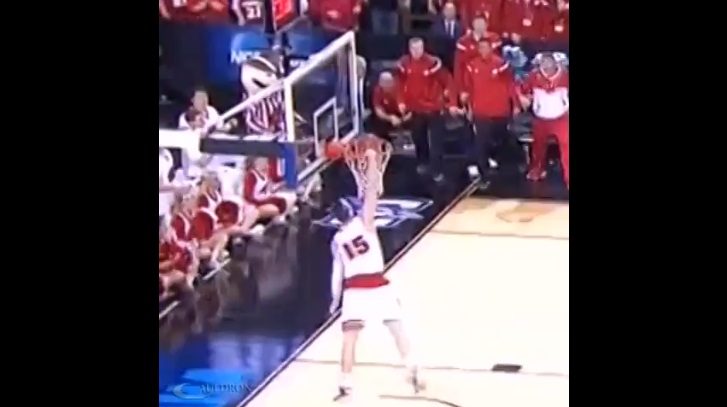 Během basketbalový zápas mezi univerzitami Oregon a Wisconsin, Sam Dekker bude pin, Ale míč vstoupí dvakrát do košíku. Bohužel, rozhodčí to započítali za dva body...