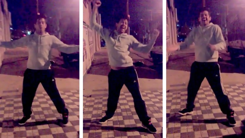 Mladý muž ze Španělska, nám ukazuje, jak někdo může tančit na „elektro“ hudební rytmus autoalarmu.