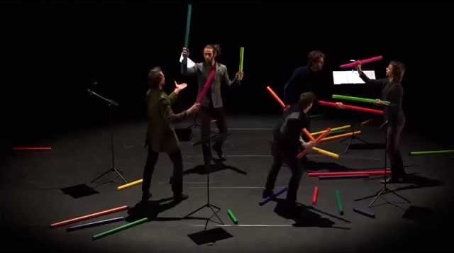 Skupina 'Létající předměty'. (Létající objekty) z Francie provádí show s působivým žonglování po celém světě od roku 1999. V tomto výpisu, hrát Prelude číslo 1 Bach, pomocí plastové trubky hudebníci (Boomwhacker) v velkolepé koordinace.