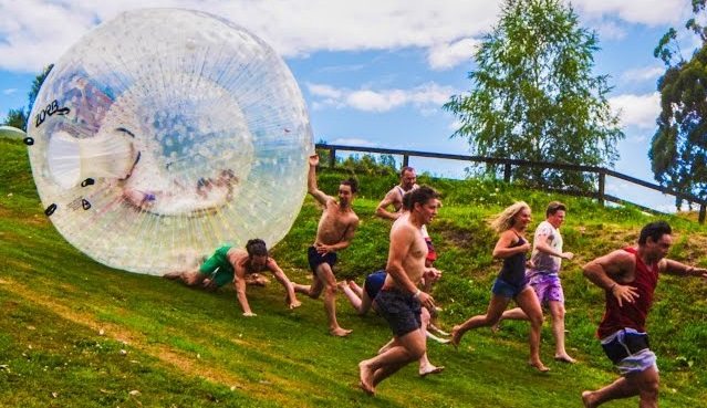 Filmař Devin Graham a jeho přátelé šli do parku Zorb Rotorua Nový Zéland, Chcete-li hrát hru Indiana Jones. Po pstruhům obří plastová koule, Musí běžet velmi rychle, tak si to ne drcený, jako ve slavné scéně z filmu.