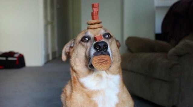 Clarku, pes je velmi disciplinovaný a pacient. Zde jeho šéf nám ukazuje, jak vyvážit různé pochoutky v hlavě s hroznou koncentrací, Při odolat pokušení pohltit je.