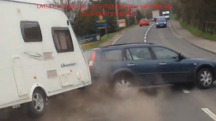 v úterý, 07.04.2015 na dálnici A39 nedaleko městečka Glastonbury v Anglii, netrpělivý řidič, který vrak karavanu, chtěl předjet kamion. Ztratil kontrolu nad vozidlem a zcela zničil karavanu bití v fanostati.