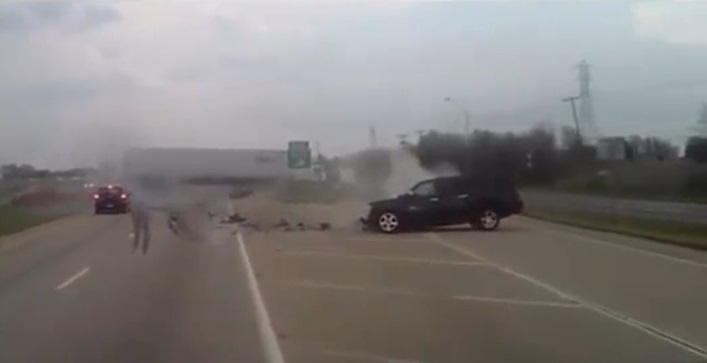 Ve Spojených státech, jeden motorista protokoly s kamerou na auto, které se pohybuje místo na dálnici. Za volantem Black 4 × 4 je žena se snaží tímto způsobem spáchat sebevraždu, řízení před kamion. Velký konflikt je převrácený kamion. Nebyly žádné vážné zranění, kromě velké materiální škody. Nebezpečné ovladač lehce zraněn a zatčen.