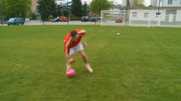 Během televizního pořadu 'Turbokozak', Marcin Zewlakow, polský fotbalový brankář běží a přestřelka, Po jeho provádí závrať rotací kolem koule.