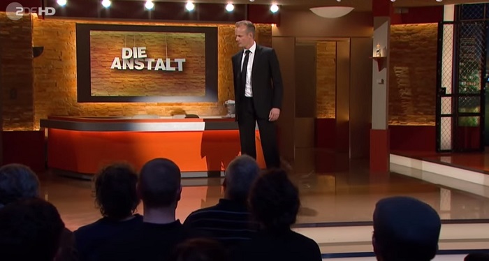 Výňatek z nedávné epizody německé show „Die Anstalt“ (28. 4. 2015). Max Oytchof Sears v parodie způsob, jak čelit Varoufakis řecký ministr financí Jannis, jeho yporgoi z eurozóny, ale i mezinárodním tisku.