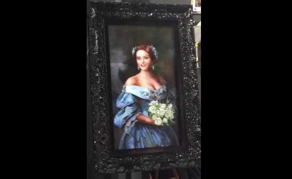 Video „Neživých“ portrétů prodávaných společností AtmosFX pro digitální dekoraci. Jednotka se zobrazí v tabulce pomocí projektoru.