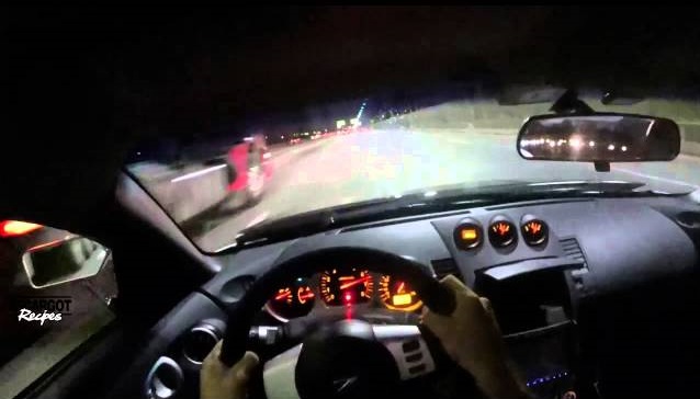 Průvodce Brazílie předán dálnice pro hřiště, a nebezpečné slalomu jako blázen v hustém provozu. Jízda Nissan 350Z, dokonce dosahující až 200 km / h.