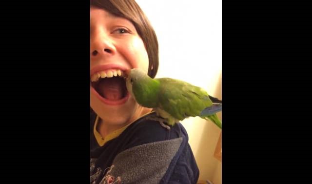 Tento papoušek praktikující vědy stomatologie na mladý Majitel Anton, Jak vytáhne a vytáhnete starý zub. Jak on sám říká nám, Je to že 5 zubu dopadá.