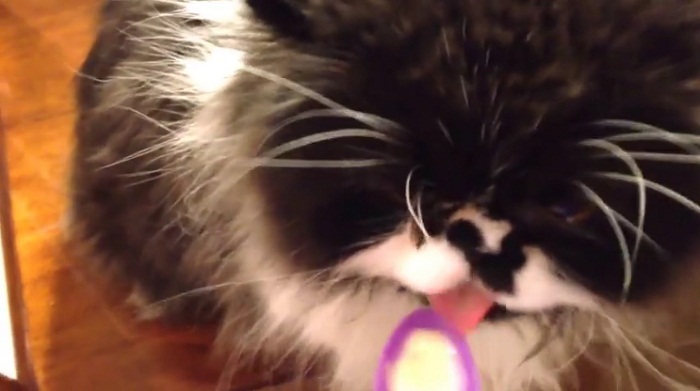 Napo Tomcat má vtipné reakce, když jeho majitel dává jíst zmrzlinu. Po trochu olizuje, zdá se, že má co do činění se 'zmrzlinovou bolestí hlavy'. Vytvořit legrační obličej vzhlédl s ústy a očima dokořán. nicméně, To je, není zaráží, a pokračuje až do polévkovou lžíci.