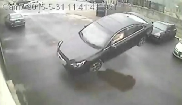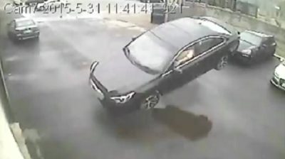 Člověk jako zázrakem přežila v hrozné nehodě s vozem v Torontu, Kanada. Snímky pořízené bezpečnostní kamery, Vidíte, jak auto létání a shazovat ve vysoké rychlosti do zdi parkoviště.