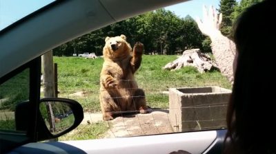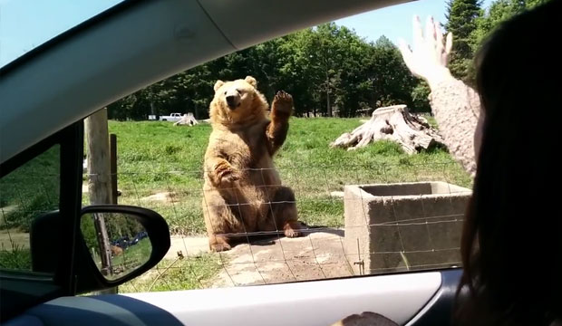 V zoologickém parku 'Olympic Game Farm' ve státě Washington ve Spojených státech, pár splňuje velmi zvláštní medvěd. Od přední části, Medvěd se napodobit žena ohlašovacích s nohou, a pak chytit pozoruhodně ve vzduchu krajíc chleba k potěšení obou návštěvníků. To je pravděpodobně nejvíce cool medvěd, jsme viděli.