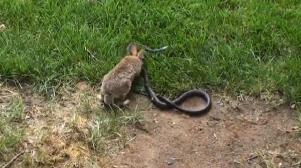 Samice králíka brání malý když vidí had napadl v hnízdě. Statečně bojuje proti plazí a pokračuje na útoky, dokud ji odstranit několik od její mláďata. Konečně se mi podařilo hrdinsky zachránit mladých králíků během útoku dravce.