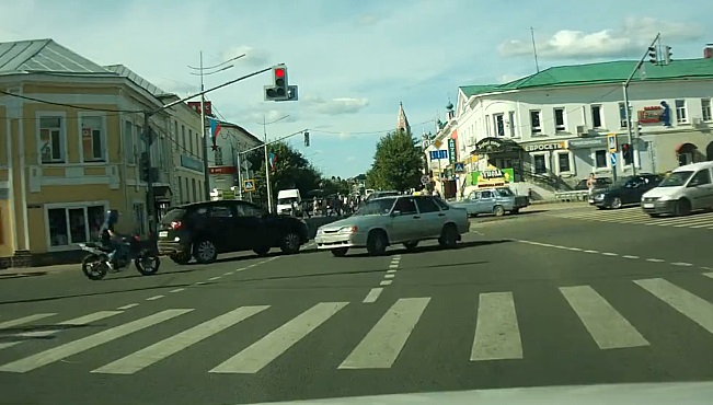 Motocyklista v městě Zaleski, Rusko Pereslabl, srazí auto a pozemky nad. Scéna se podobal akrobatické kaskadér filmu, Zatímco jezdec zázračně není zraněn.