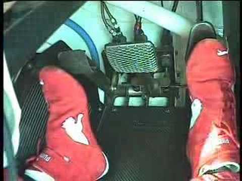 Záběry z pohybů nohama na pedály automobilu, během závodu V8 Supercars. Řidič je Neil Crompton.