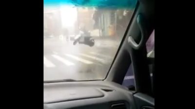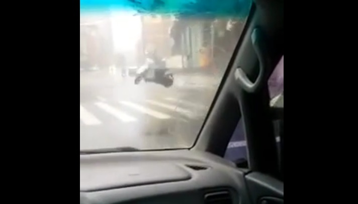 Zatímco řidič v křižovatce Tchaj-pej, hlavní město Tchaj-wan, On vidí skútr, který se nachází na okraji silnice vzestupu několik stop ve vzduchu z hurikánu. Tato kategorie 5 hurikán zasáhl Tchaj-wanu dnes a nyní míří do Číny.