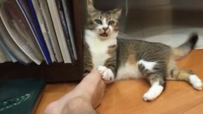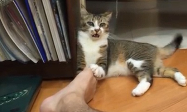 Kočka se rozhodne hrát s jeho nohou její majitel, ale přijde proti zápachu.