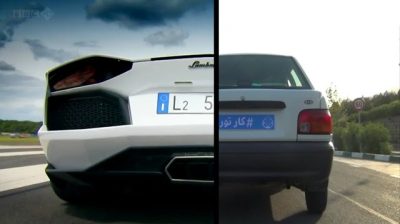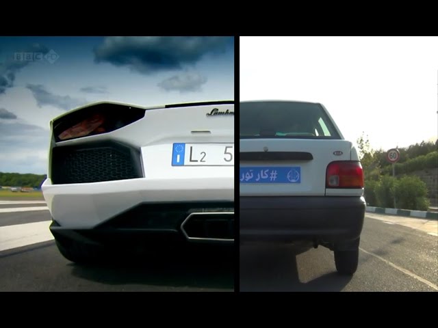 Komici z replikou scénu Írán Top Gear, kde moderátor Richard Hammond řídí Lamborghini Aventador. V jejich vlastní verzi, test se provádí s úžasným... Kia Pride.