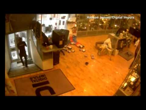Záběr je z bezpečnostní kamery v obchodě, který se nacházel o blok od velkého třesku v centru města.