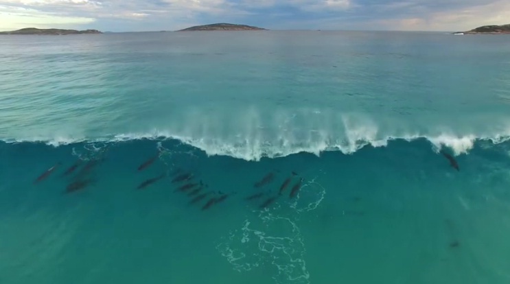 Delfíni pobřeží Esperance město v Austrálii, Bavte se na velké vlny.