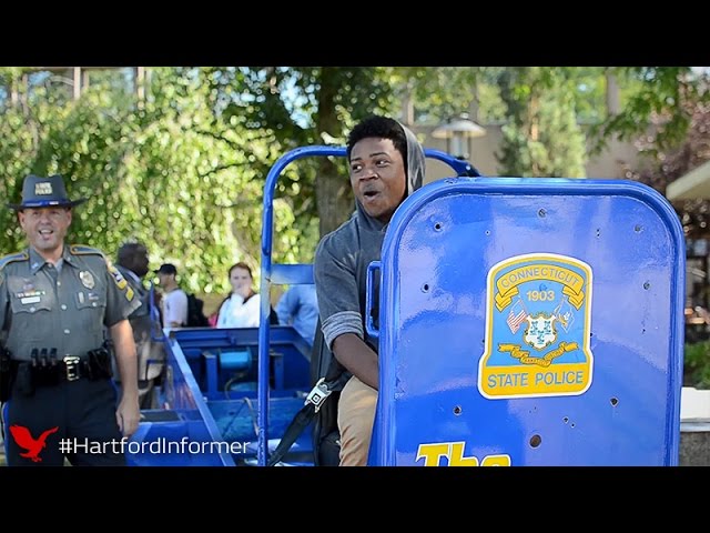 Na univerzitě Hartfordu v Connecticutu, studenti měli možnost vyzkoušet „Přesvědčovatel“, zařízení, které simuluje srážku s autem na 8 km / h. Mladí lidé, kteří se účastní experimentu bude překvapen, s účinky ke konfliktu i při nízkých rychlostech. Můžeme vidět ve videu, jak důležité je využívání. Pěkný preventivní kampaň provedl místní policie Connecticut.