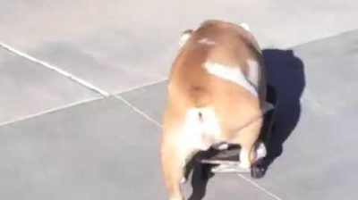 Snažíme se ho naučit na FAT jezdit na skateboardu, ale jediné, co dělá je honit a kousat skateboard. Už může držet, je v něm ale stále není lze tlačit nebo procházka v jí všechny strany.