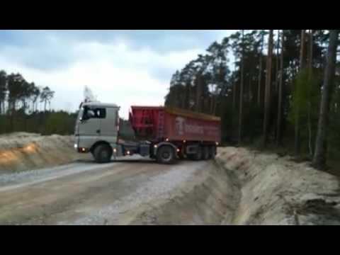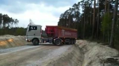 Zkušený řidič s přívěsy v Polsku, reverzní s jeho vozidlem ve velmi úzké uličce.